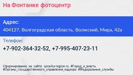 На Фонтанке, фотоцентр по адресу 404127, Волгоградская область, Волжский, Мира, 42а в дальнейшем Организация, размещена в следующих категориях: