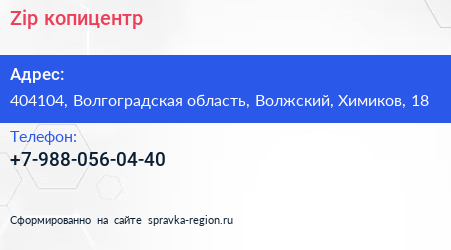 Zip, копицентр по адресу 404104, Волгоградская область, Волжский, Химиков, 18 в дальнейшем Организация, размещена в следующих категориях: