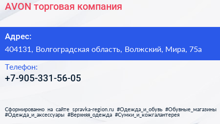 AVON, торговая компания по адресу 404131, Волгоградская область, Волжский, Мира, 75а в дальнейшем Организация, размещена в следующих категориях: