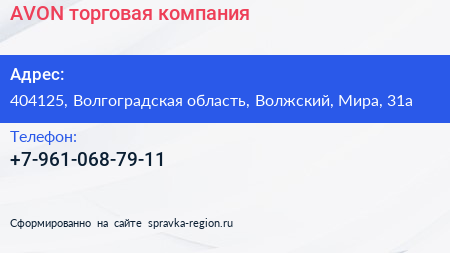 AVON, торговая компания по адресу 404125, Волгоградская область, Волжский, Мира, 31а в дальнейшем Организация, размещена в следующих категориях: