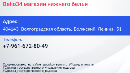 Belio34, магазин нижнего белья по адресу 404143, Волгоградская область, Волжский, Ленина, 51 в дальнейшем Организация, размещена в следующих категориях: