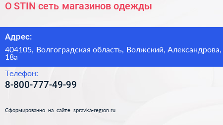 O`STIN, сеть магазинов одежды по адресу 404105, Волгоградская область, Волжский, Александрова, 18а в дальнейшем Организация, размещена в следующих категориях: