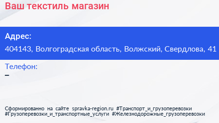 Ваш текстиль, магазин по адресу 404143, Волгоградская область, Волжский, Свердлова, 41 в дальнейшем Организация, размещена в следующих категориях: