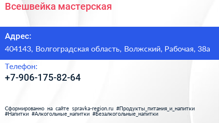 Всешвейка, мастерская по адресу 404143, Волгоградская область, Волжский, Рабочая, 38а в дальнейшем Организация, размещена в следующих категориях: