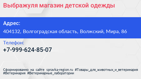 Выбражуля, магазин детской одежды по адресу 404132, Волгоградская область, Волжский, Мира, 86 в дальнейшем Организация, размещена в следующих категориях: