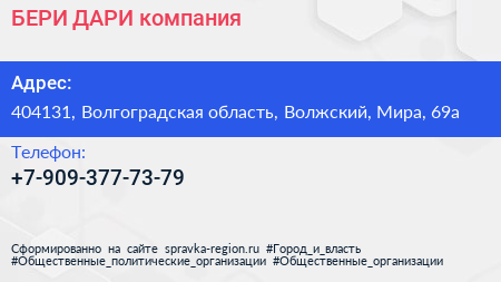 БЕРИ-ДАРИ!, компания по адресу 404131, Волгоградская область, Волжский, Мира, 69а в дальнейшем Организация, размещена в следующих категориях: