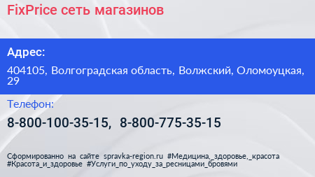 FixPrice, сеть магазинов по адресу 404105, Волгоградская область, Волжский, Оломоуцкая, 29 в дальнейшем Организация, размещена в следующих категориях: