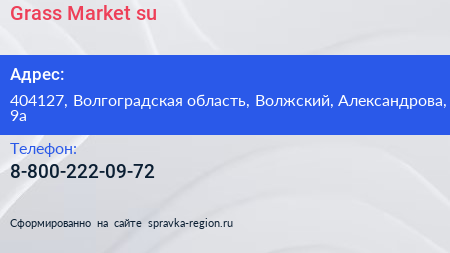 Grass-Market.su по адресу 404127, Волгоградская область, Волжский, Александрова, 9а в дальнейшем Организация, размещена в следующих категориях: