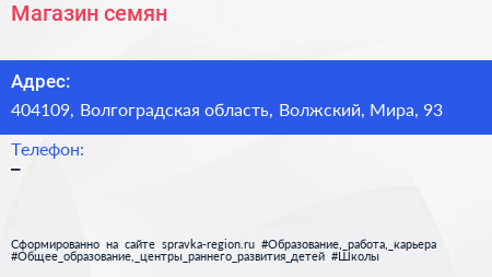 Магазин семян по адресу 404109, Волгоградская область, Волжский, Мира, 93 в дальнейшем Организация, размещена в следующих категориях: