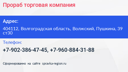 Прораб, торговая компания по адресу 404112, Волгоградская область, Волжский, Пушкина, 39 ст30 в дальнейшем Организация, размещена в следующих категориях: