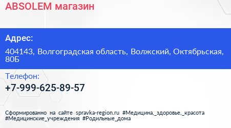 ABSOLEM, магазин по адресу 404143, Волгоградская область, Волжский, Октябрьская, 80Б в дальнейшем Организация, размещена в следующих категориях: