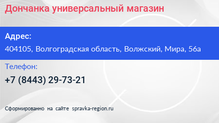 Дончанка, универсальный магазин по адресу 404105, Волгоградская область, Волжский, Мира, 56а в дальнейшем Организация, размещена в следующих категориях: