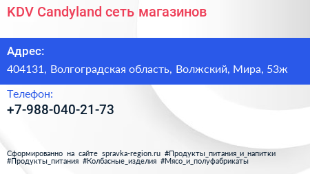 KDV Candyland, сеть магазинов по адресу 404131, Волгоградская область, Волжский, Мира, 53ж в дальнейшем Организация, размещена в следующих категориях: