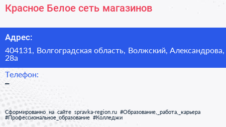 Красное & Белое, сеть магазинов по адресу 404131, Волгоградская область, Волжский, Александрова, 28а в дальнейшем Организация, размещена в следующих категориях: