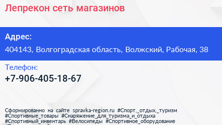 Лепрекон, сеть магазинов по адресу 404143, Волгоградская область, Волжский, Рабочая, 38 в дальнейшем Организация, размещена в следующих категориях: