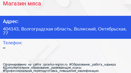 Магазин мяса по адресу 404143, Волгоградская область, Волжский, Октябрьская, 77 в дальнейшем Организация, размещена в следующих категориях: