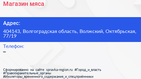 Магазин мяса по адресу 404143, Волгоградская область, Волжский, Октябрьская, 77/19 в дальнейшем Организация, размещена в следующих категориях: