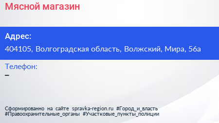 Мясной магазин по адресу 404105, Волгоградская область, Волжский, Мира, 56а в дальнейшем Организация, размещена в следующих категориях: