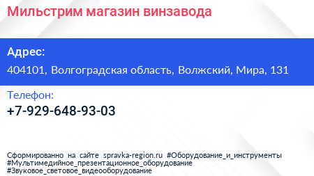 Мильстрим, магазин винзавода по адресу 404101, Волгоградская область, Волжский, Мира, 131 в дальнейшем Организация, размещена в следующих категориях: