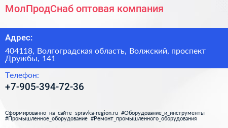 МолПродСнаб, оптовая компания по адресу 404118, Волгоградская область, Волжский, проспект Дружбы, 141 в дальнейшем Организация, размещена в следующих категориях: