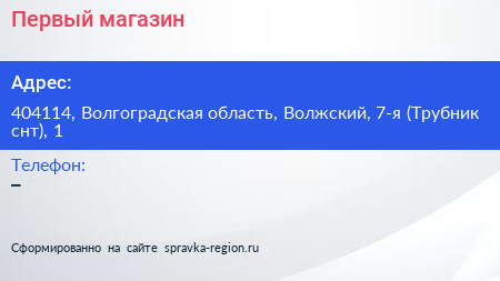 Первый, магазин по адресу 404114, Волгоградская область, Волжский, 7-я (Трубник снт), 1 в дальнейшем Организация, размещена в следующих категориях: