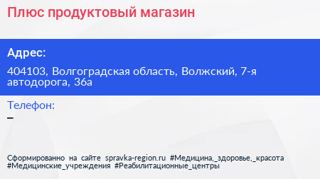 Плюс, продуктовый магазин по адресу 404103, Волгоградская область, Волжский, 7-я автодорога, 36а в дальнейшем Организация, размещена в следующих категориях: