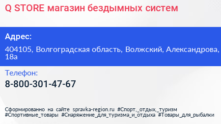 Q STORE, магазин бездымных систем по адресу 404105, Волгоградская область, Волжский, Александрова, 18а в дальнейшем Организация, размещена в следующих категориях: