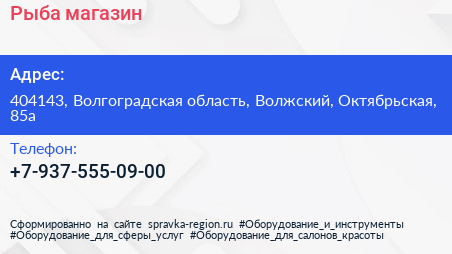 Рыба, магазин по адресу 404143, Волгоградская область, Волжский, Октябрьская, 85а в дальнейшем Организация, размещена в следующих категориях: