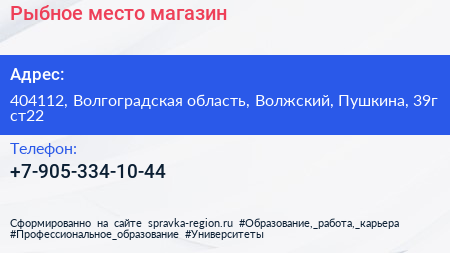 Рыбное место, магазин по адресу 404112, Волгоградская область, Волжский, Пушкина, 39г ст22 в дальнейшем Организация, размещена в следующих категориях: