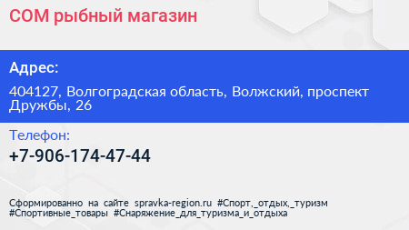 СОМ, рыбный магазин по адресу 404127, Волгоградская область, Волжский, проспект Дружбы, 26 в дальнейшем Организация, размещена в следующих категориях: