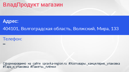 ВладПродукт, магазин по адресу 404101, Волгоградская область, Волжский, Мира, 133 в дальнейшем Организация, размещена в следующих категориях: