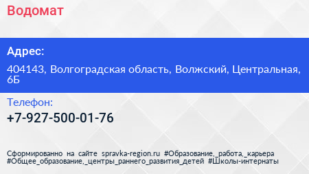 Водомат по адресу 404143, Волгоградская область, Волжский, Центральная, 6Б в дальнейшем Организация, размещена в следующих категориях: