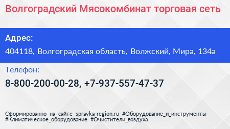 Волгоградский Мясокомбинат, торговая сеть по адресу 404118, Волгоградская область, Волжский, Мира, 134а в дальнейшем Организация, размещена в следующих категориях: