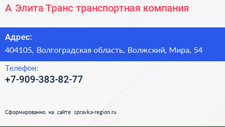 А-Элита Транс, транспортная компания по адресу 404105, Волгоградская область, Волжский, Мира, 54 в дальнейшем Организация, размещена в следующих категориях: