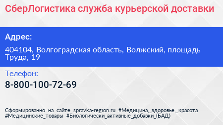 СберЛогистика, служба курьерской доставки по адресу 404104, Волгоградская область, Волжский, площадь Труда, 19 в дальнейшем Организация, размещена в следующих категориях: