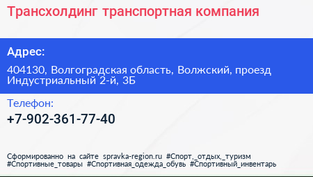 Трансхолдинг, транспортная компания по адресу 404130, Волгоградская область, Волжский, проезд Индустриальный 2-й, 3Б в дальнейшем Организация, размещена в следующих категориях: