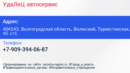 УдаЛеЦ, автосервис по адресу 404143, Волгоградская область, Волжский, Туркестанская, 45 ст1 в дальнейшем Организация, размещена в следующих категориях: