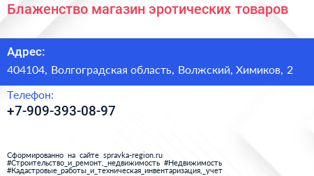 Блаженство, магазин эротических товаров по адресу 404104, Волгоградская область, Волжский, Химиков, 2 в дальнейшем Организация, размещена в следующих категориях: