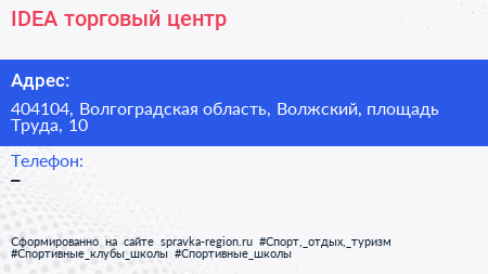 IDEA, торговый центр по адресу 404104, Волгоградская область, Волжский, площадь Труда, 10 в дальнейшем Организация, размещена в следующих категориях: