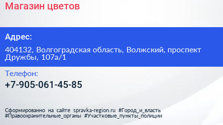 Магазин цветов по адресу 404132, Волгоградская область, Волжский, проспект Дружбы, 107а/1 в дальнейшем Организация, размещена в следующих категориях: