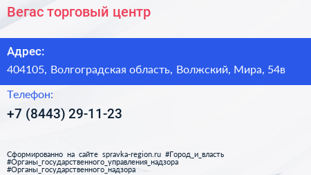 Вегас, торговый центр по адресу 404105, Волгоградская область, Волжский, Мира, 54в в дальнейшем Организация, размещена в следующих категориях:
