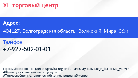 XL, торговый центр по адресу 404127, Волгоградская область, Волжский, Мира, 36ж в дальнейшем Организация, размещена в следующих категориях: