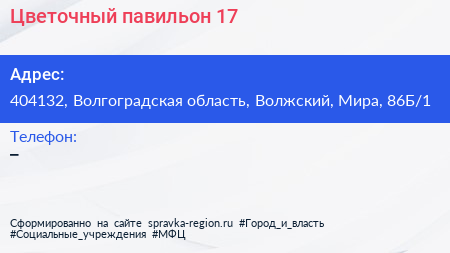 Цветочный павильон №17 по адресу 404132, Волгоградская область, Волжский, Мира, 86Б/1 в дальнейшем Организация, размещена в следующих категориях: