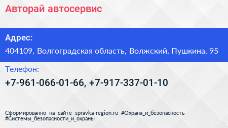Авторай, автосервис по адресу 404109, Волгоградская область, Волжский, Пушкина, 95 в дальнейшем Организация, размещена в следующих категориях: