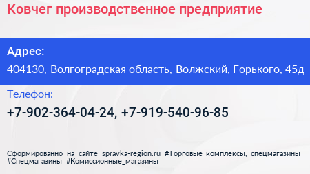 Ковчег, производственное предприятие по адресу 404130, Волгоградская область, Волжский, Горького, 45д в дальнейшем Организация, размещена в следующих категориях: