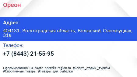 Ореон по адресу 404131, Волгоградская область, Волжский, Оломоуцкая, 31в в дальнейшем Организация, размещена в следующих категориях:
