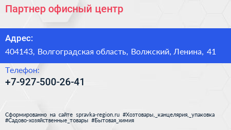 Партнер, офисный центр по адресу 404143, Волгоградская область, Волжский, Ленина, 41 в дальнейшем Организация, размещена в следующих категориях: