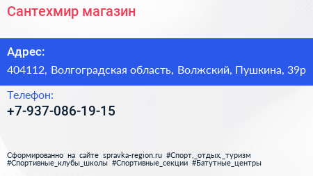 Сантехмир, магазин по адресу 404112, Волгоградская область, Волжский, Пушкина, 39р в дальнейшем Организация, размещена в следующих категориях: