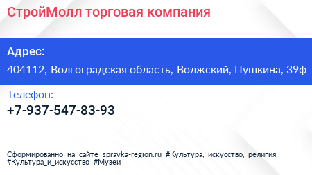 СтройМолл, торговая компания по адресу 404112, Волгоградская область, Волжский, Пушкина, 39ф в дальнейшем Организация, размещена в следующих категориях: