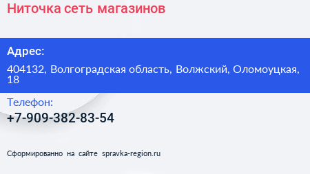 Ниточка, сеть магазинов по адресу 404132, Волгоградская область, Волжский, Оломоуцкая, 18 в дальнейшем Организация, размещена в следующих категориях:
